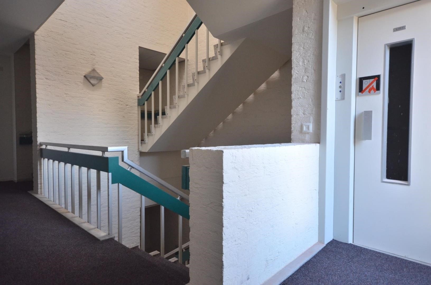 Gezamenlijke entree; hal met meterkasten en toegang tot het trappenhuis en de lift.