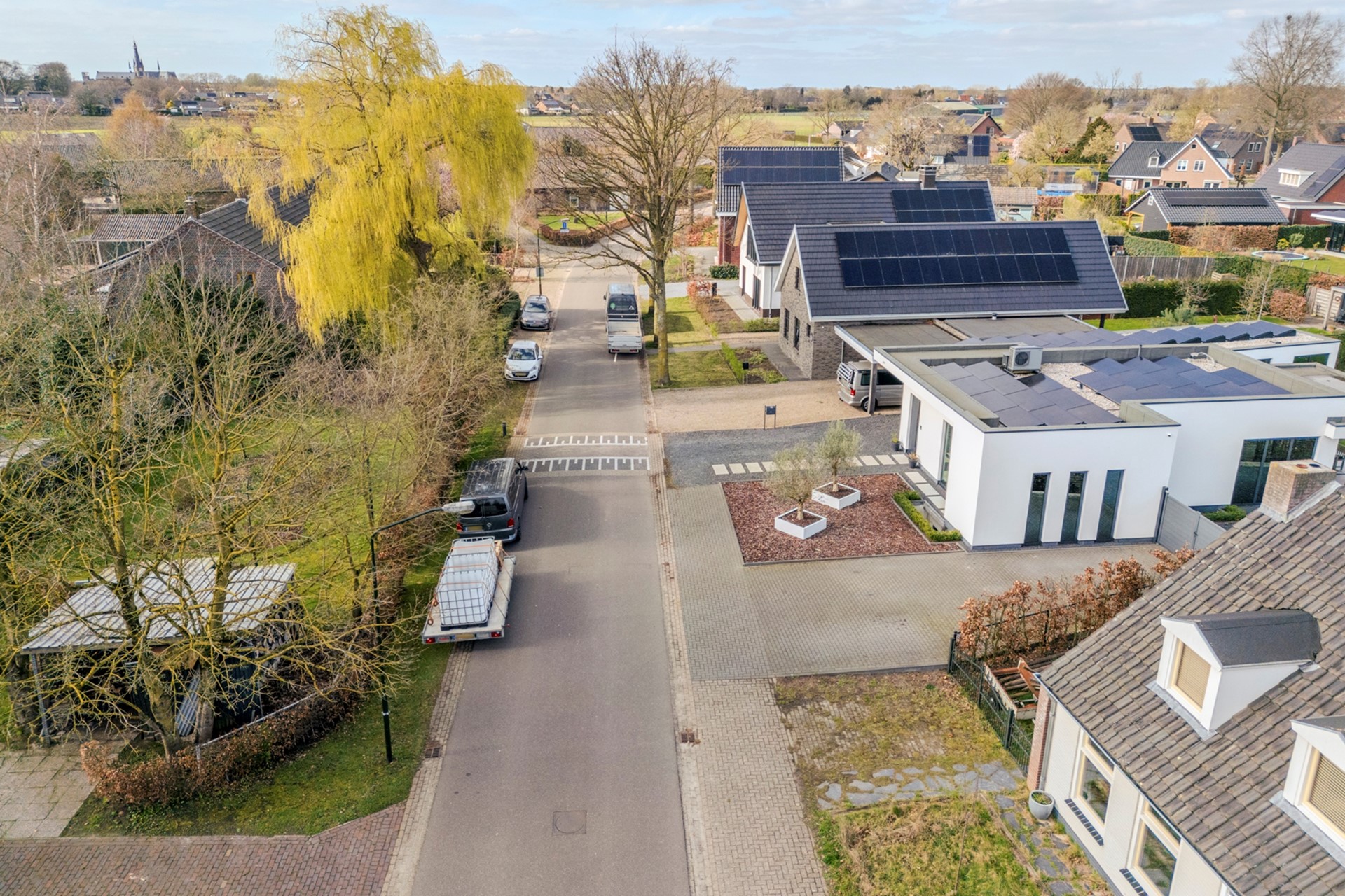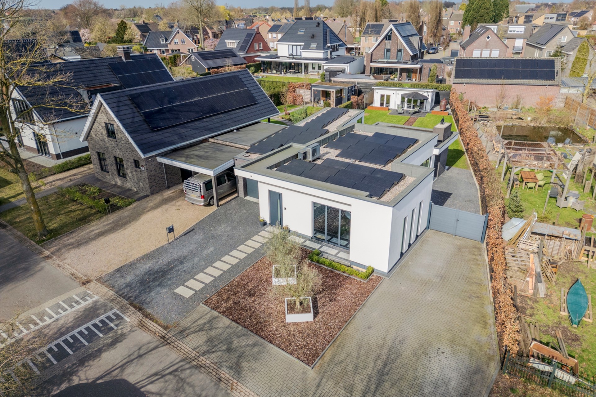 De oprit aan de voorzijde biedt plaats aan meerdere auto's.