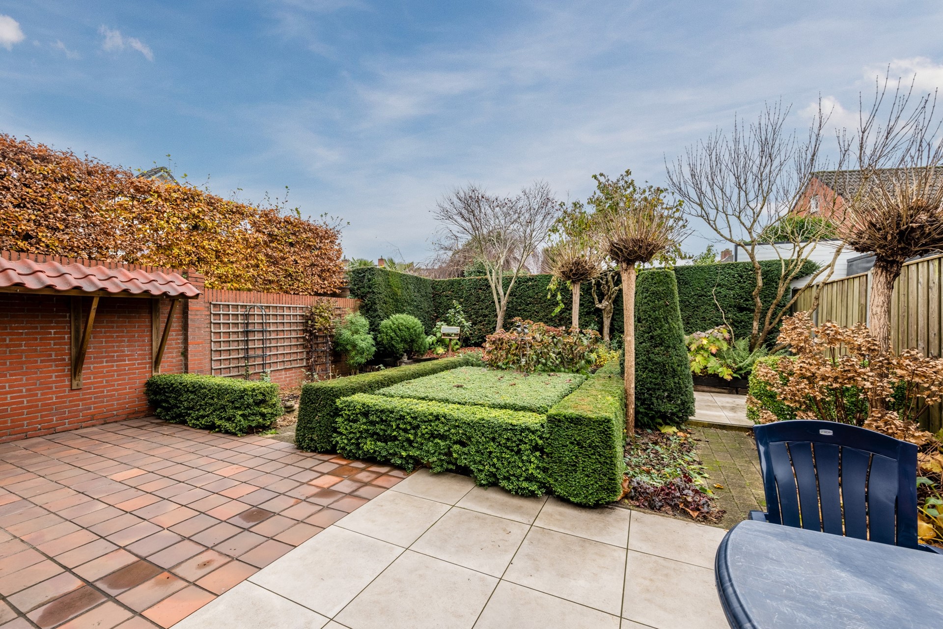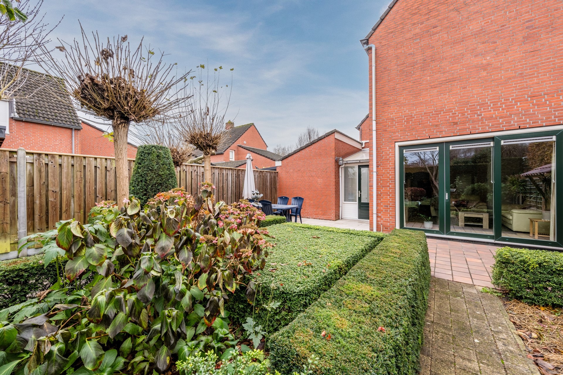 Zowel de voortuin als ook de achtertuin zijn keurig onderhouden en v.v. aanplant en een groot terras. De privacy biedende achtertuin is geheel omheind.