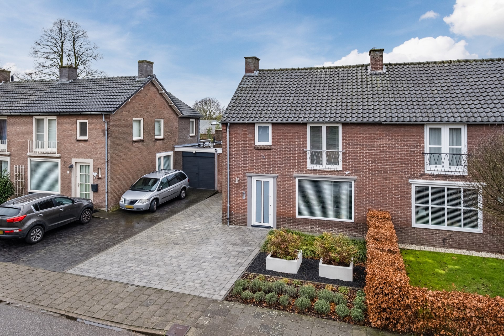 De tuin aan de voorzijde is onderhoudsvriendelijk aangelegd met border en bestrating. Hier kun je met gemak 2 tot 3 auto's kwijt.