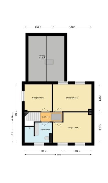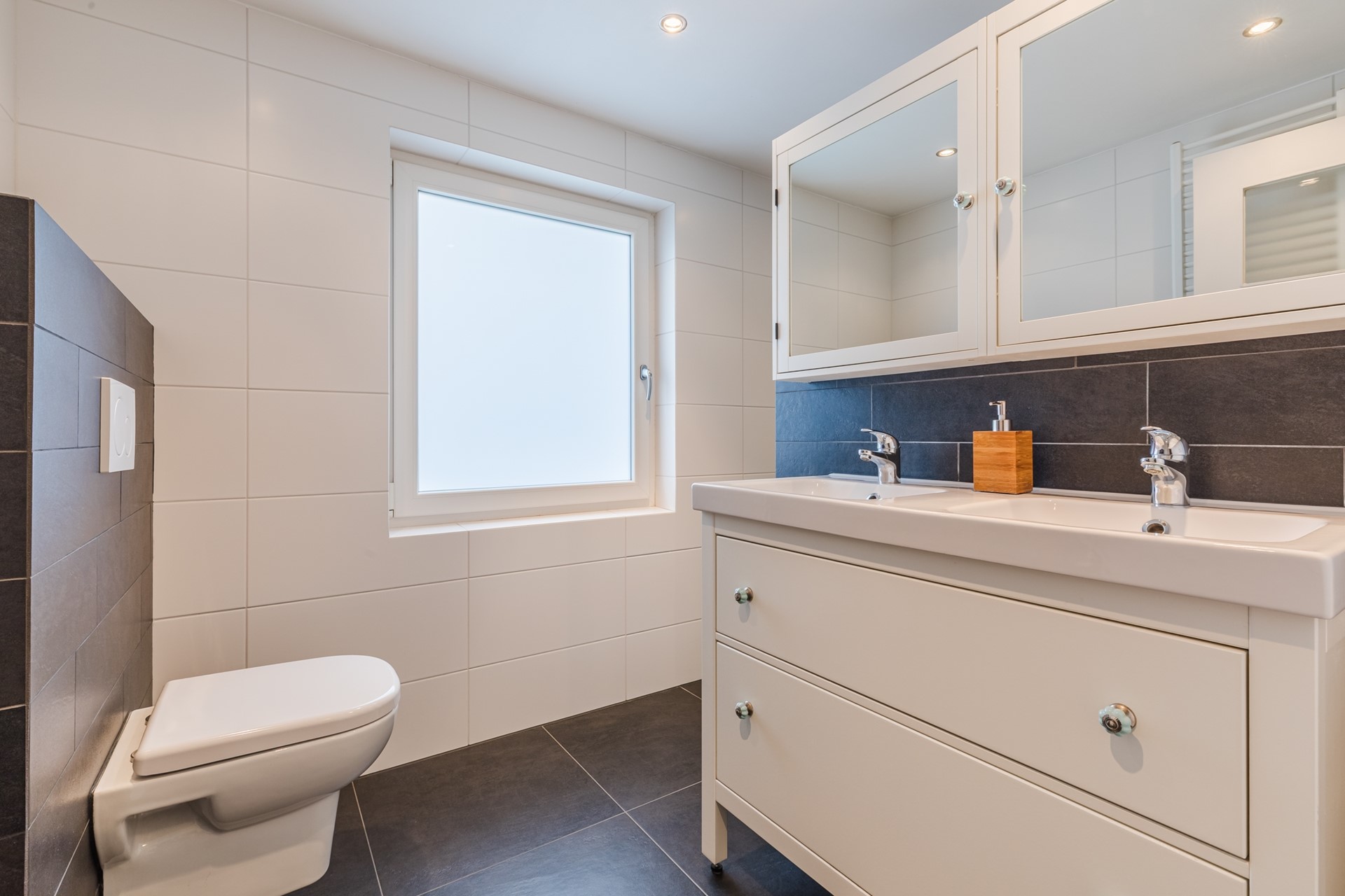 Overloop; 3 slaapkamers; betegelde badkamer v.v. een inloopdouche, meubel met dubbele wastafel, spiegelkast en een wandcloset; bergzolder boven de bijkeuken.