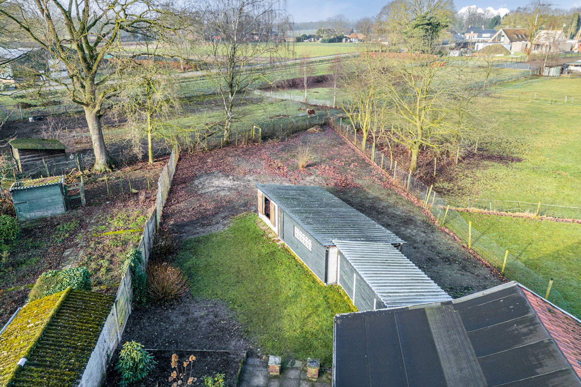 Het perceel is geheel omheind en heeft aan de achterzijde een vrij landelijk uitzicht.